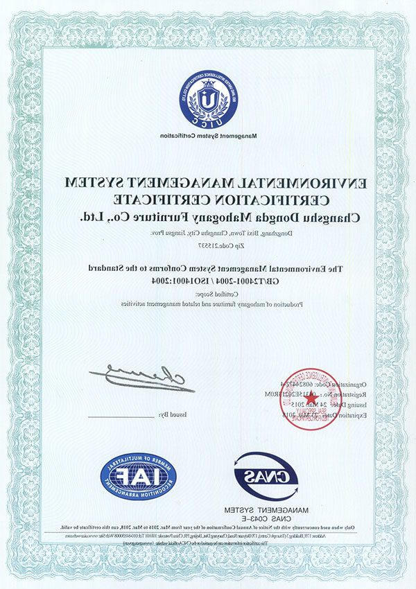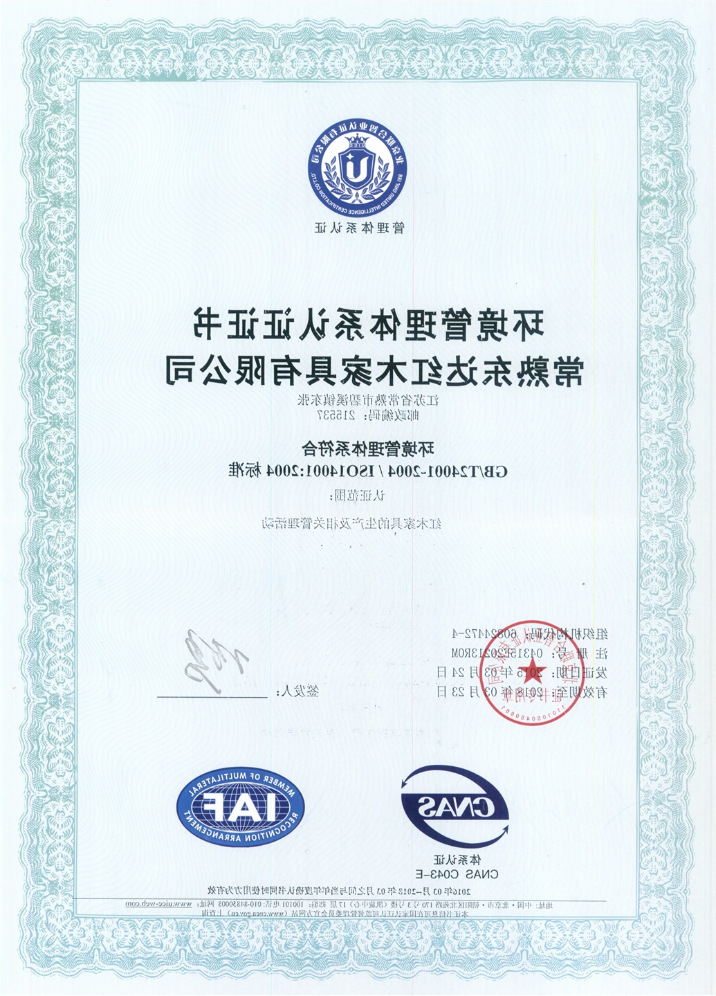 ISO14001生态环境管理系统模式资格认证职业技能证书