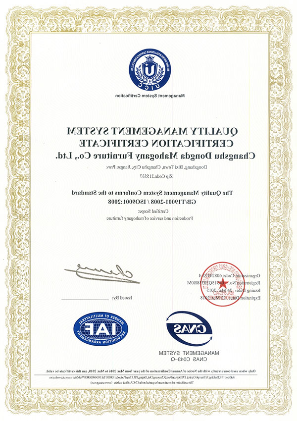 ISO9001产品品质服务管理安全体系资格认证合格证英文翻译…